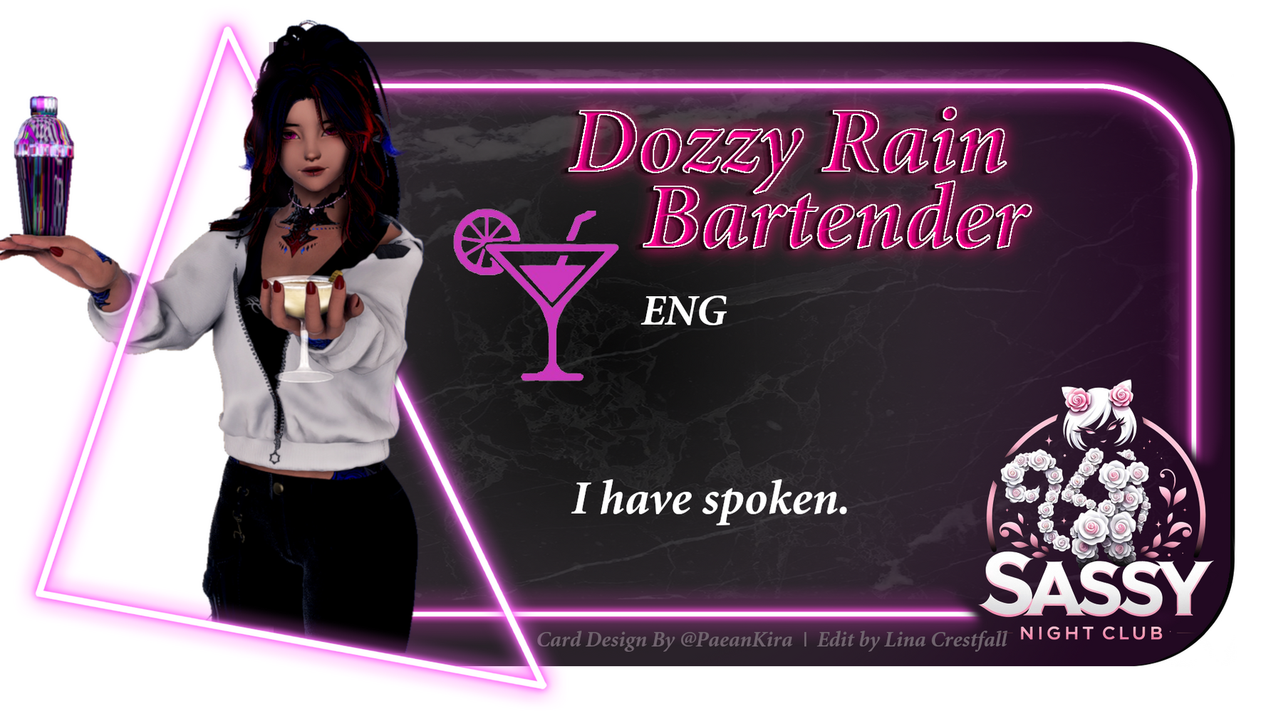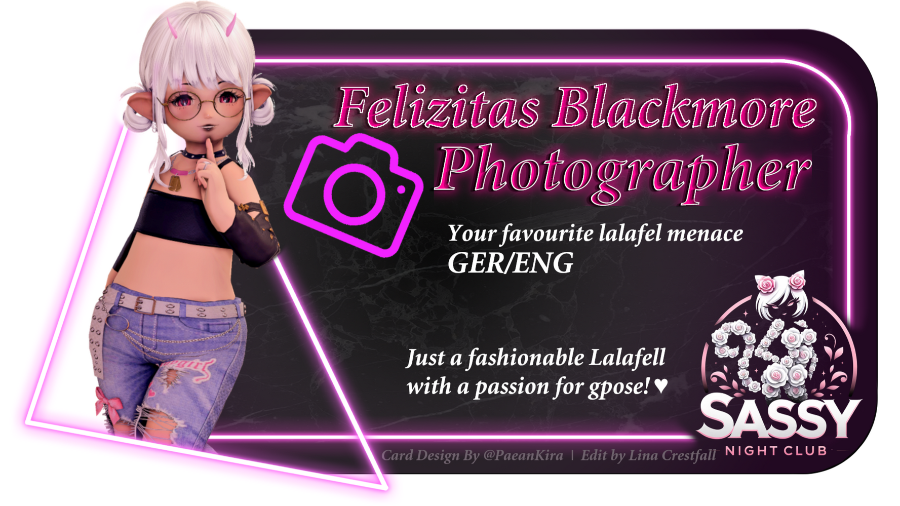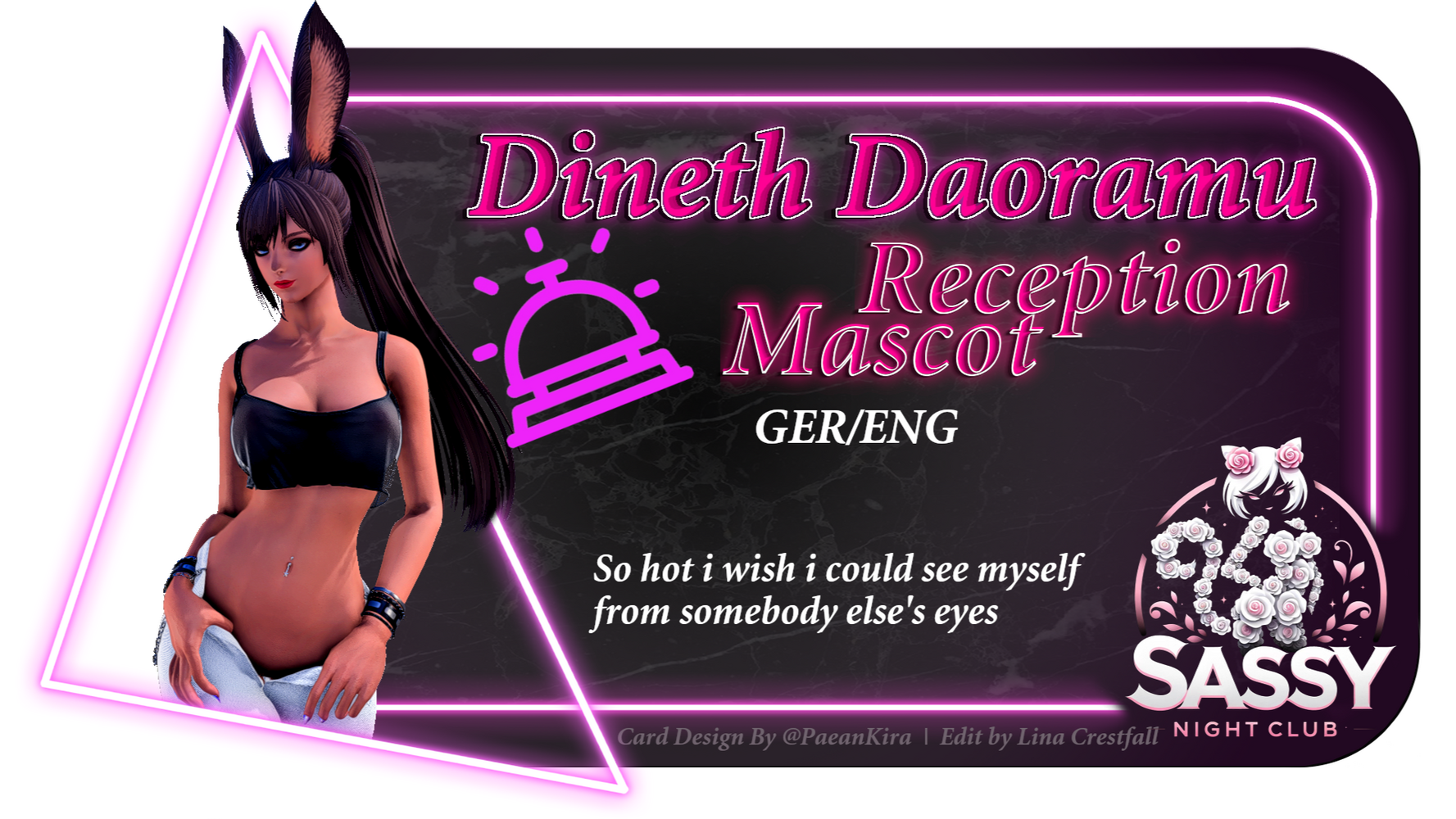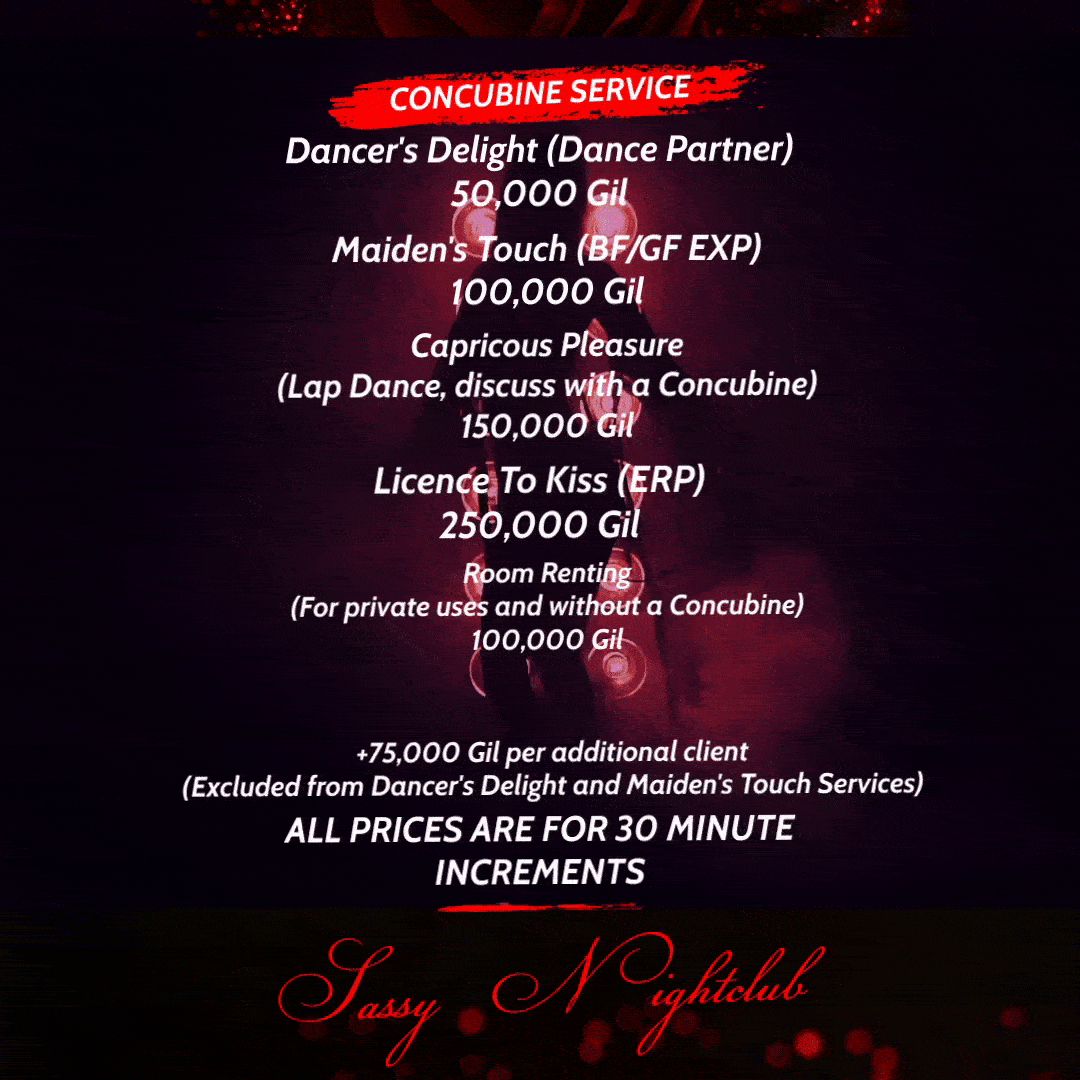 Bio: Sakari broke out from a noble Ishgardian family and decided to try her luck in the Eorzean Nightlife, leaving the royal duties behind. She worked hard to become a manager quickly, met a lot of amazing people and became a well known face in the clubbing scene.