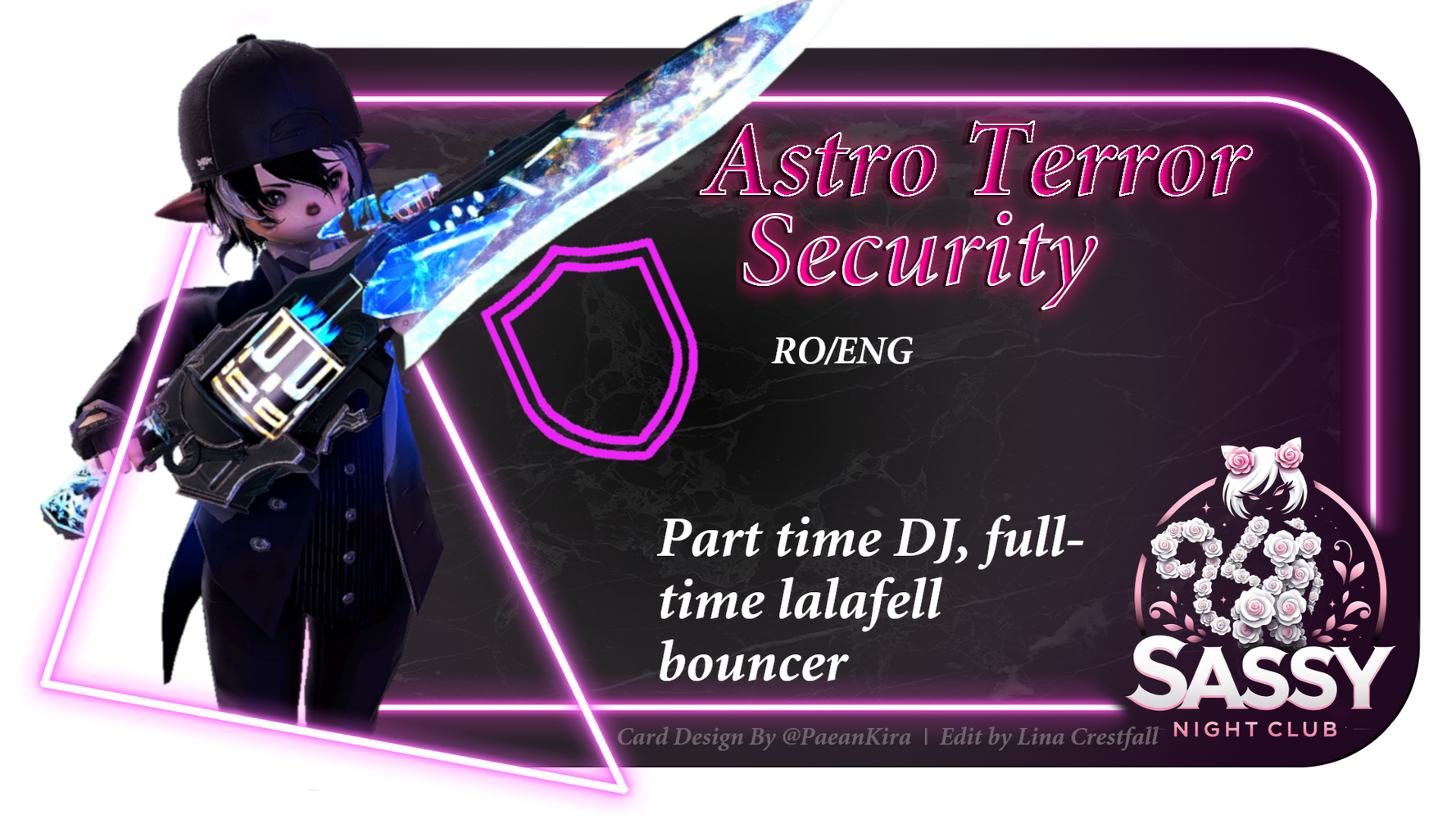 Bio: Ter Ror is dedicated to safeguarding the people of Eorzea. By day, a fierce defender; by night, a spirited party DJ, spreading joy and music across the realm. Yet, beneath this cheerful exterior lies a Lalafell consumed by darkness and terror, striving to find balance in a world of light and shadow.